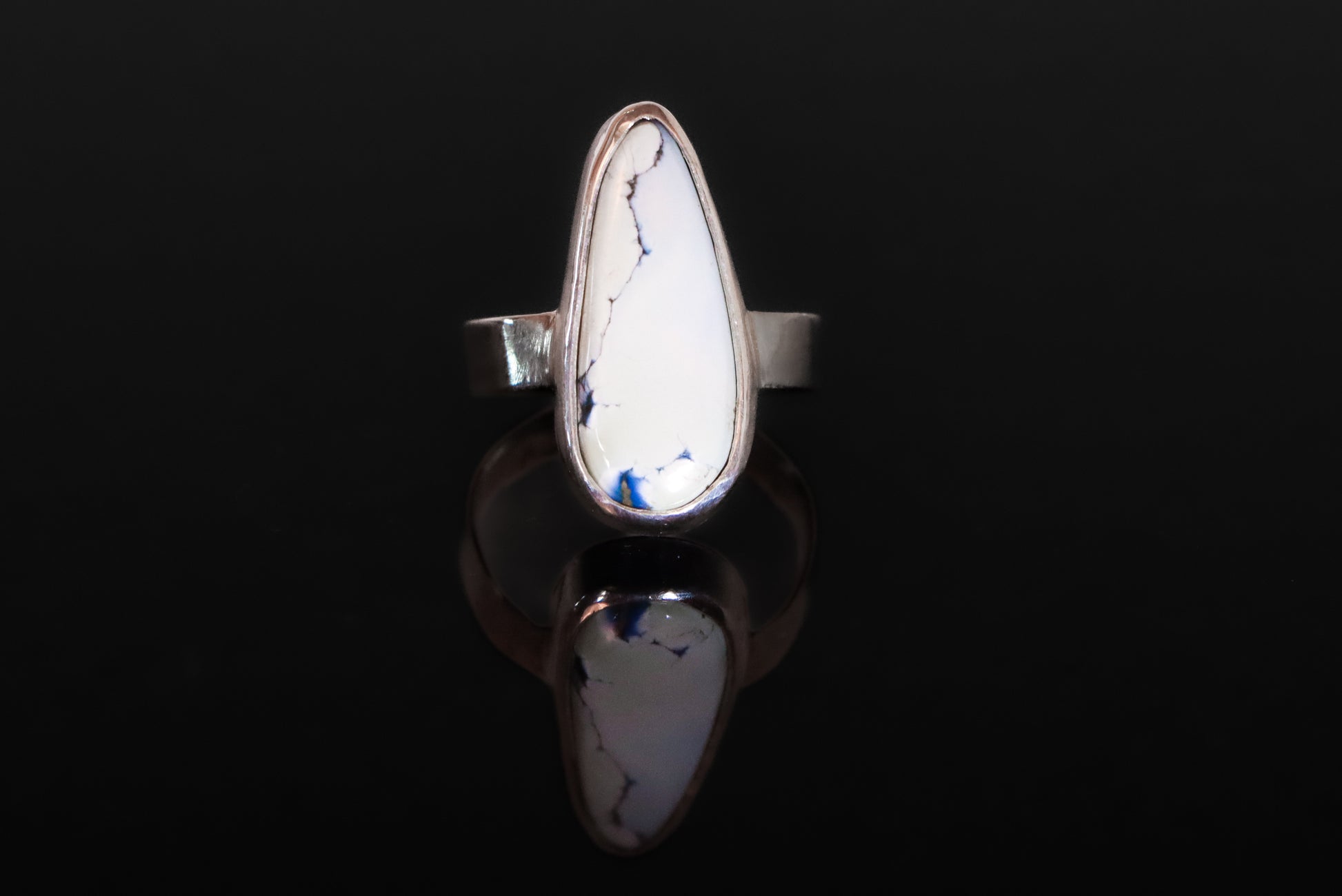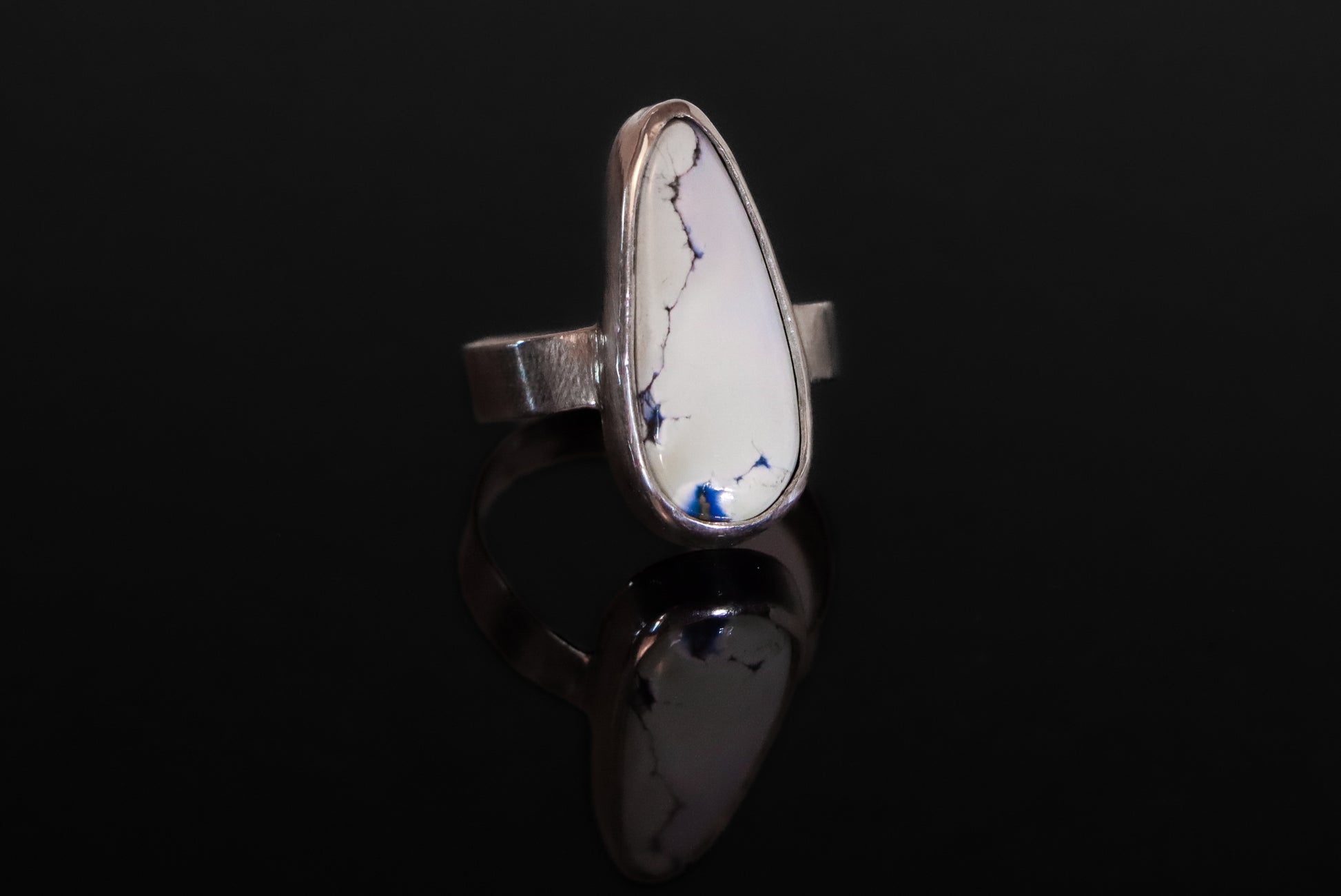 A stunning Candelaria Turquoise bezel set in sterling silver on a comfort fit band.
