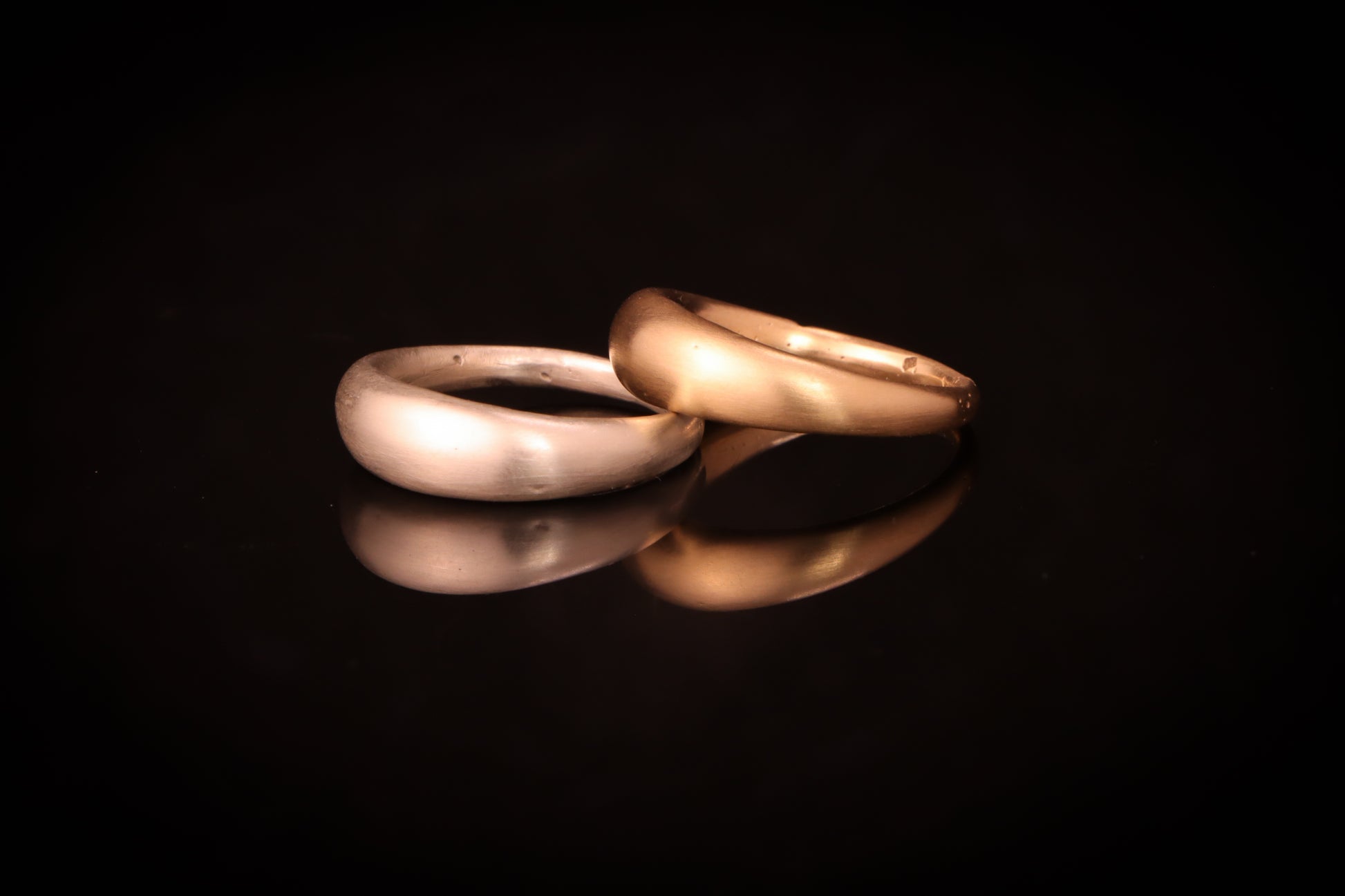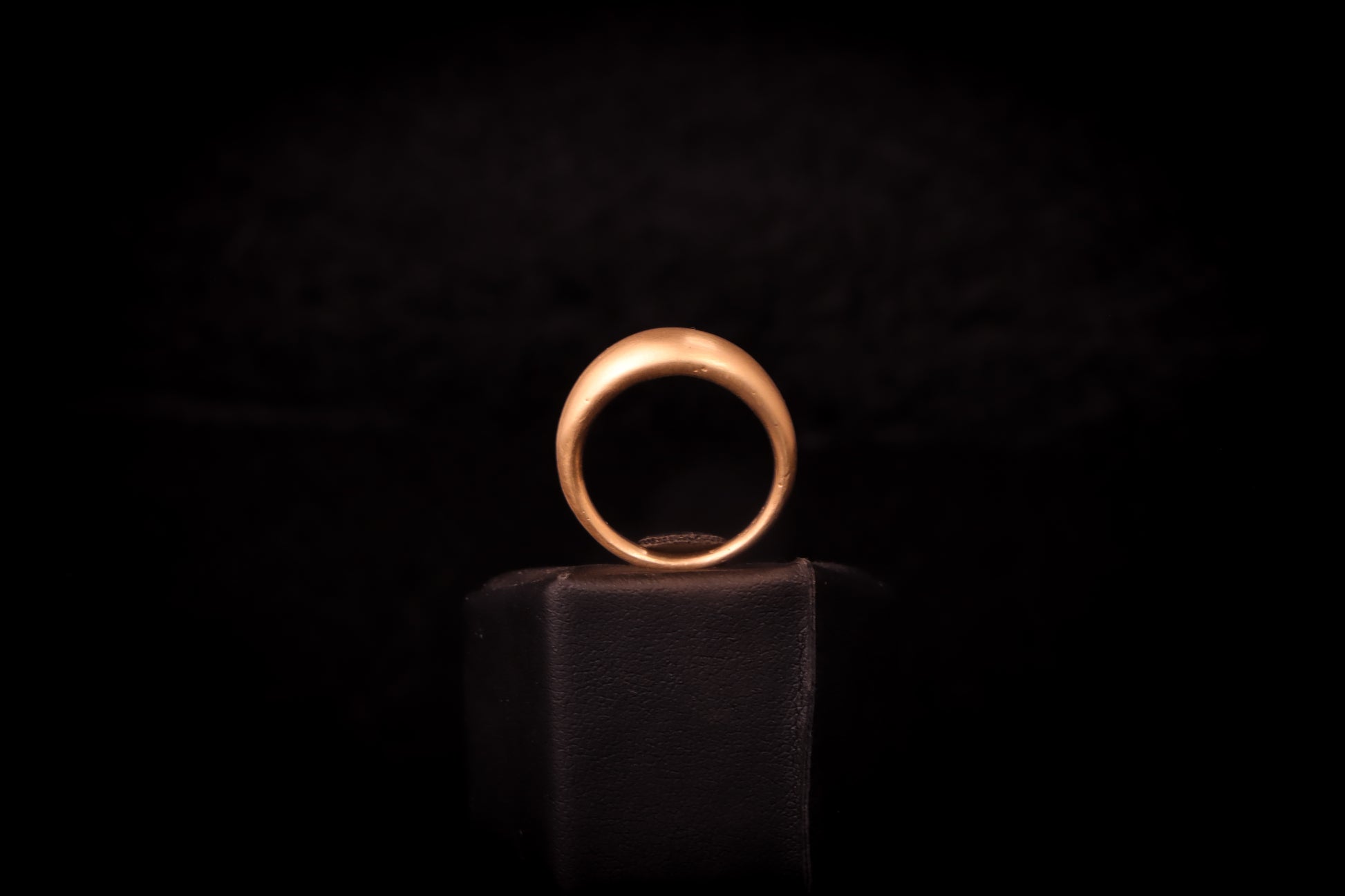 An elegant tapered ring, hand carved and cast is your choice of gold with a brushed finish. The ring silhouette tapers from 2mm to 6mm. Each ring is made to order, please allow 3-6 weeks for production.