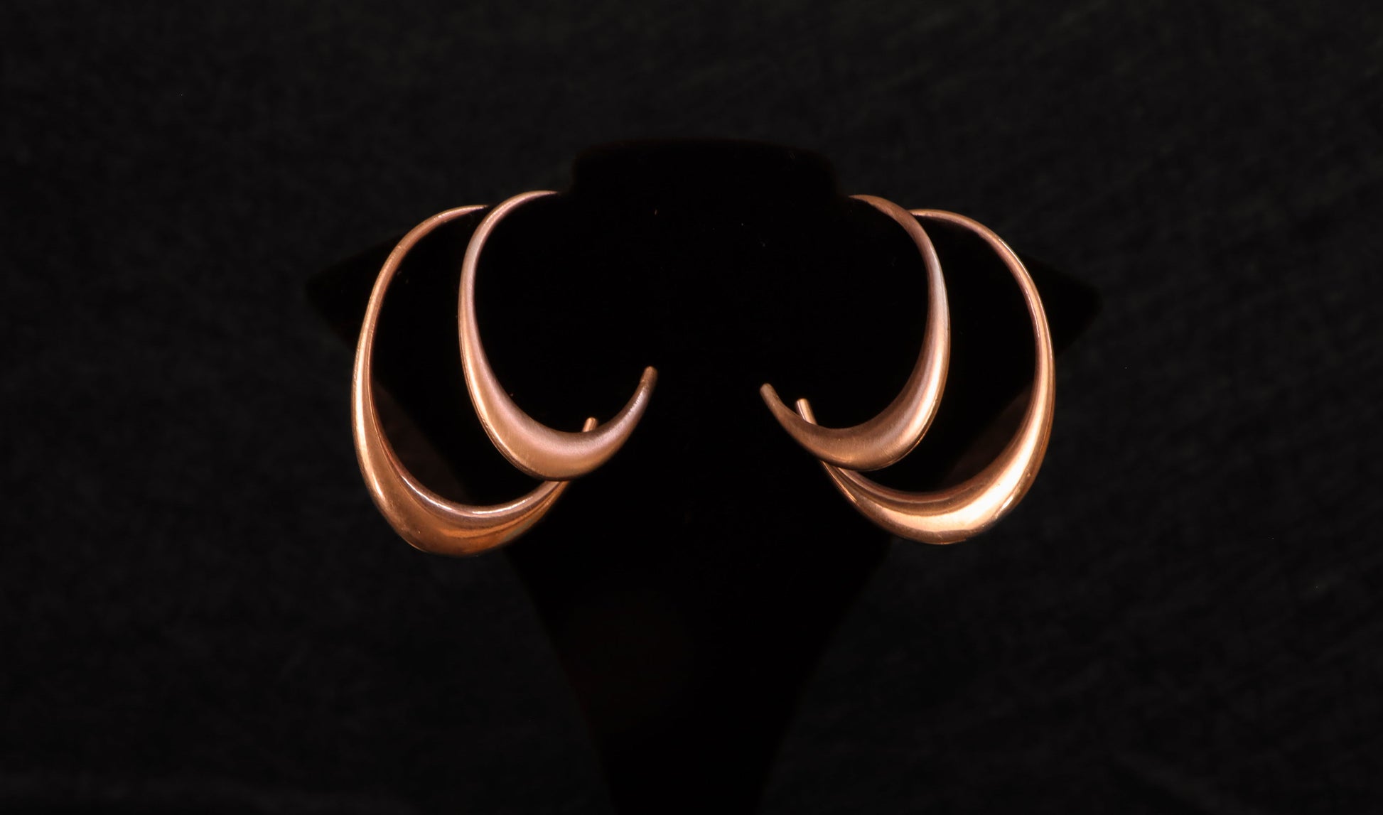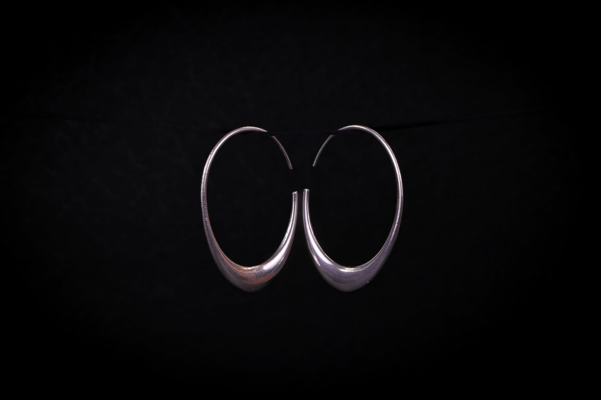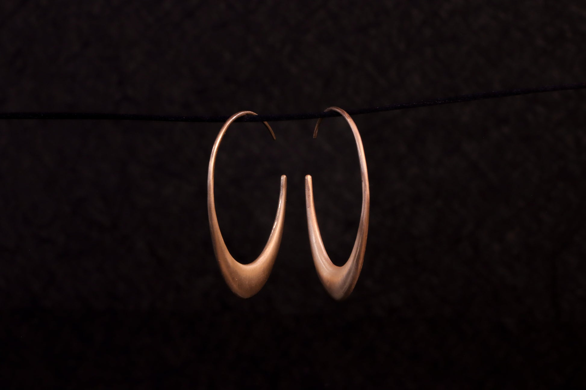 Sleek oval hoops with a tapered crescent. Cast in your choice of gold with a brushed finished.