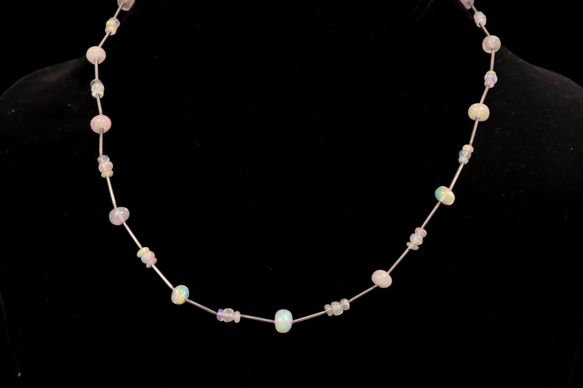 Vibrant Ethiopian Opal and Sterling Silver beaded necklace.